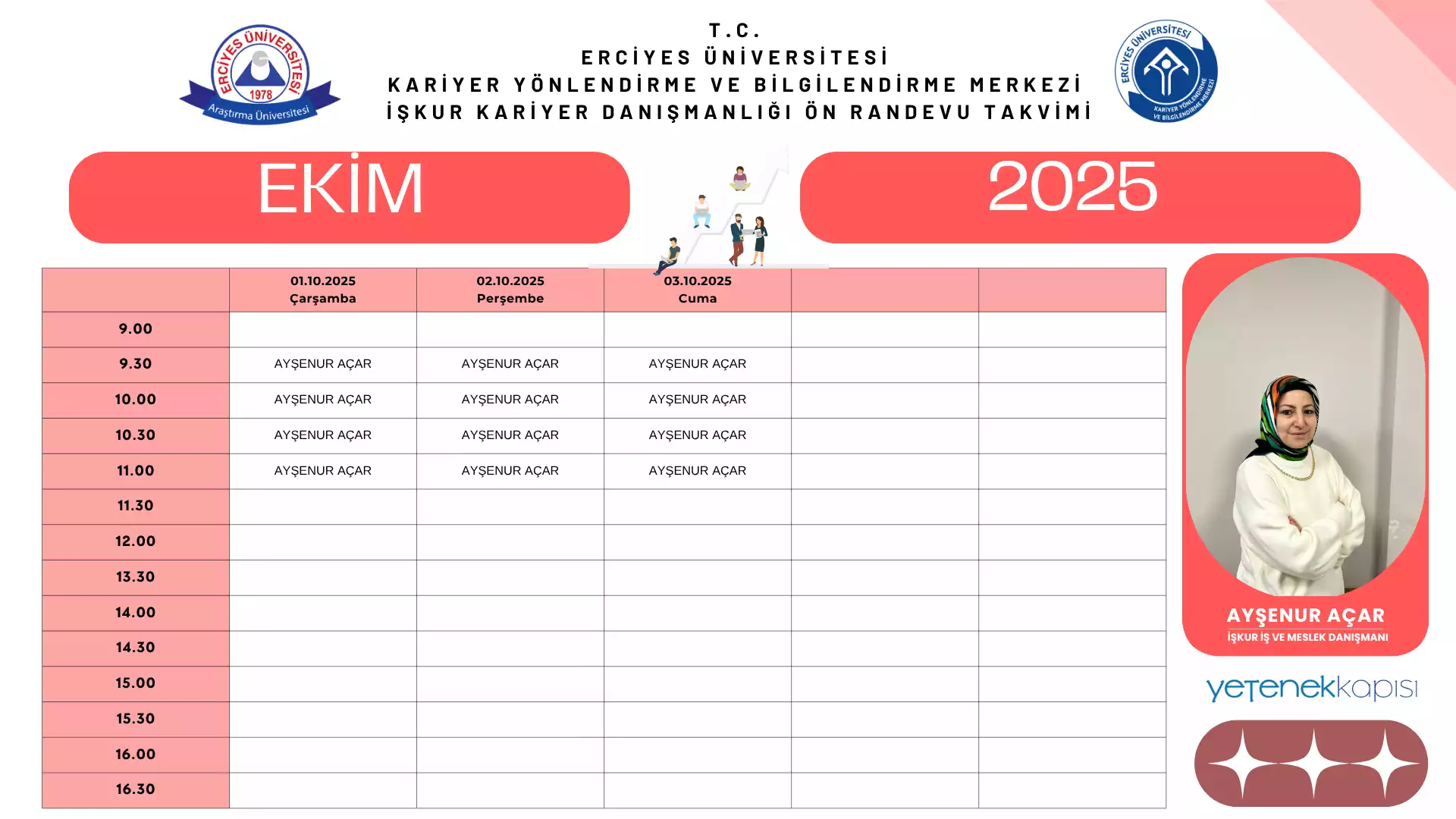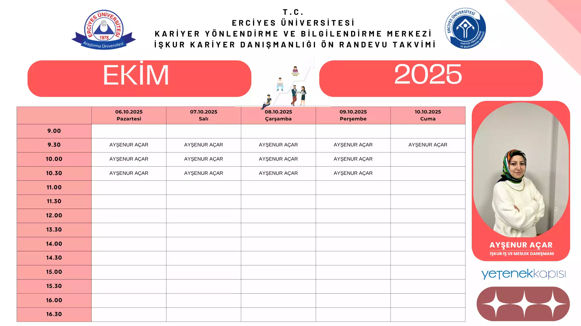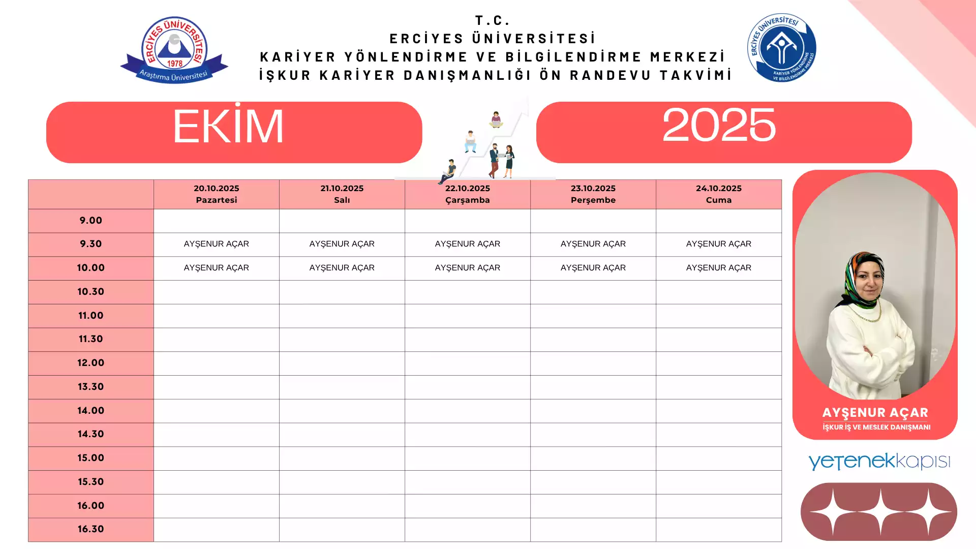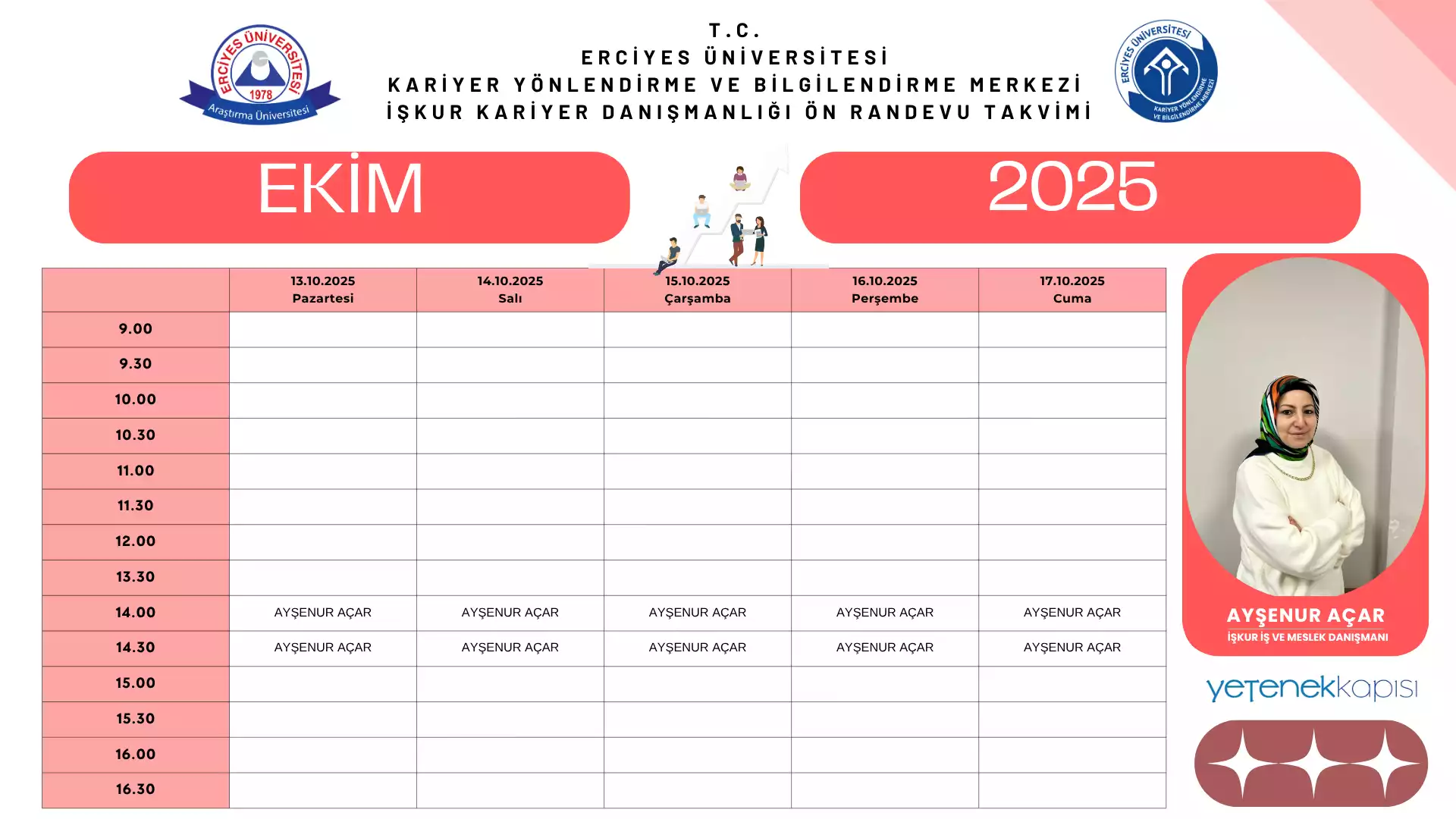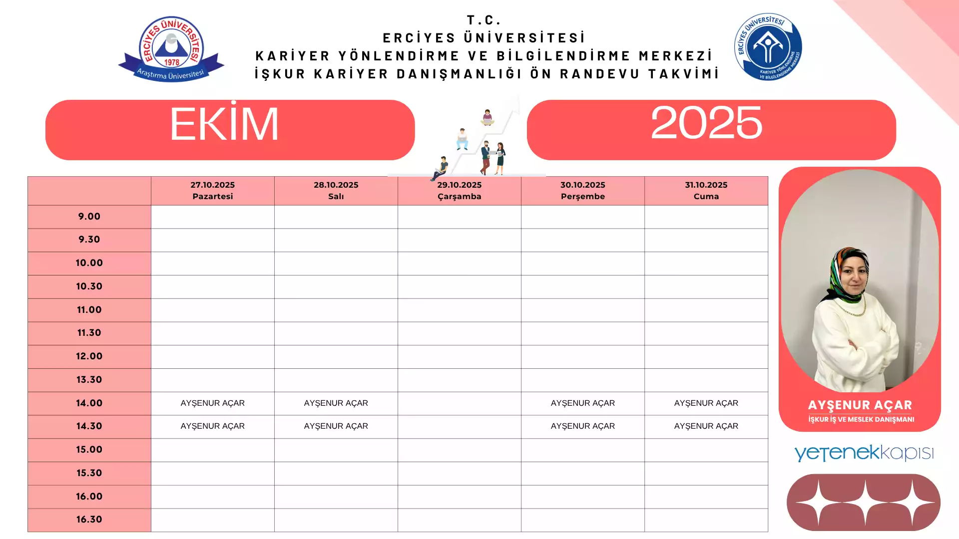Kariyer Danışmanlığı Ekim 2025 Ön Randevu Takvimi (Ayşenur Açar)