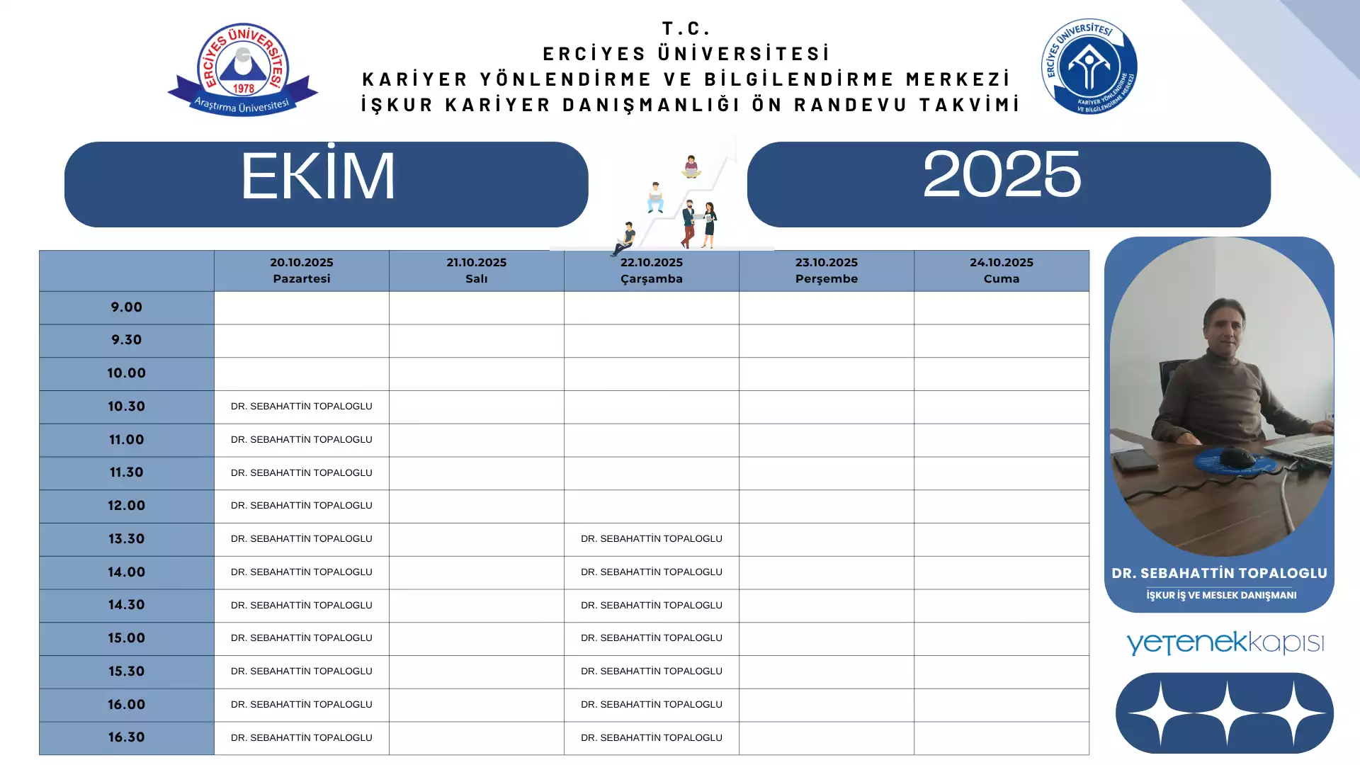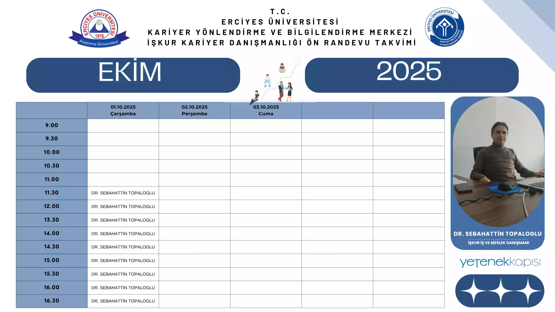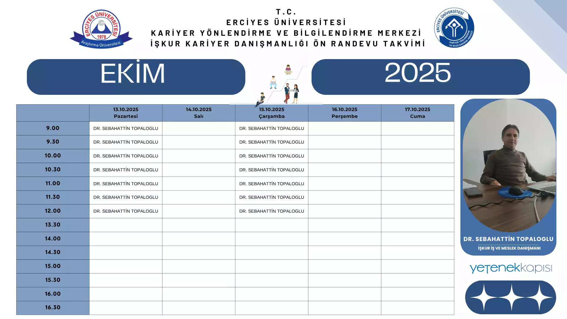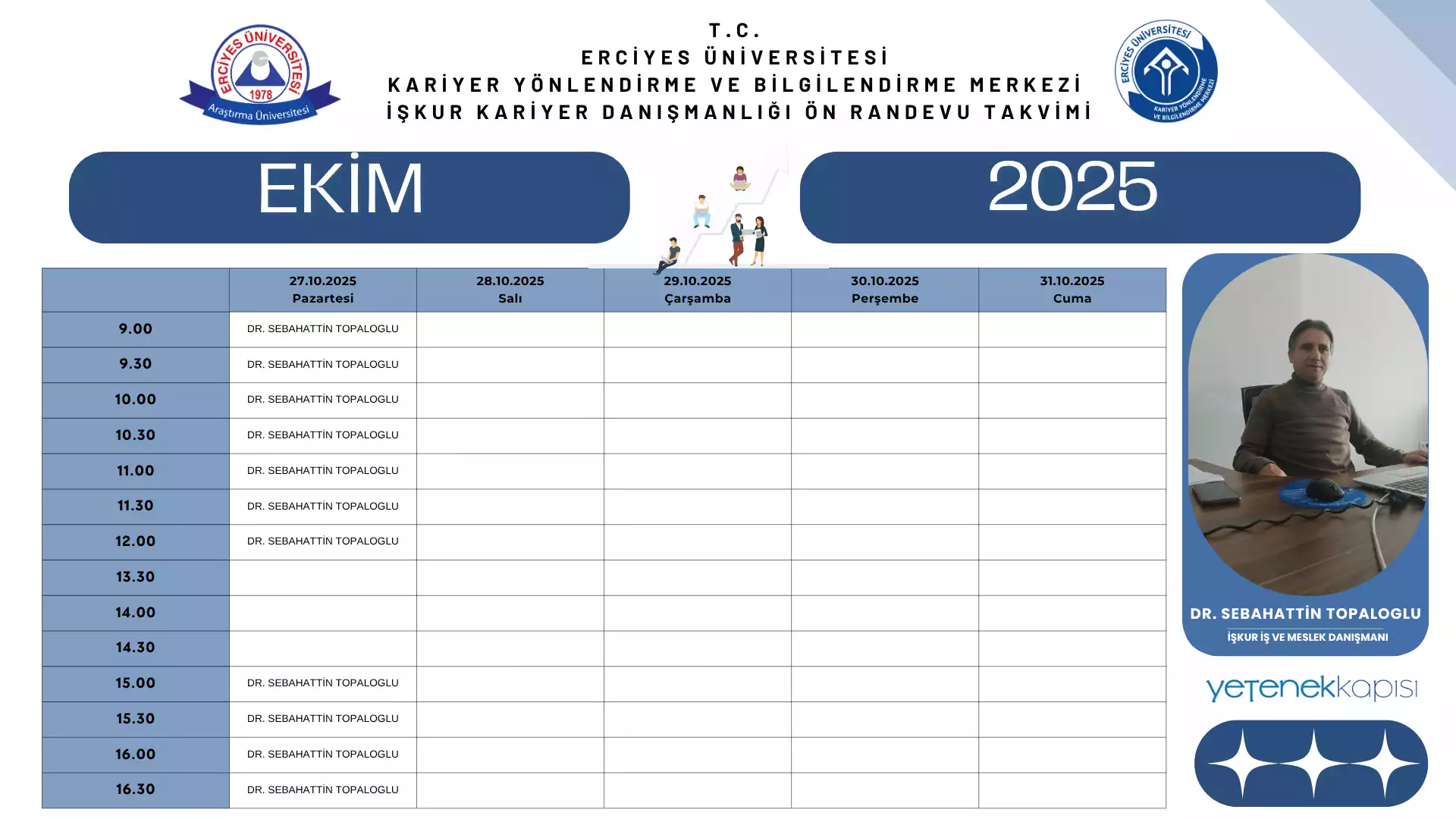 Kariyer Danışmanlığı Ekim 2025 Ön Randevu Takvimi (Dr. Sebahattin Topaloglu)