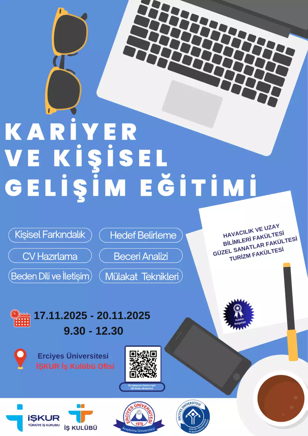 Sevgili Öğrencimiz, İŞKUR Kayseri İl Müdürlüğü ile 03.11.2025- 06.11.2025 tarihlerinde gerçekleştireceğimiz Kariyer ve Kişisel Gelişim Eğitimine (cv hazırlama, mülakat teknikleri, beden dili ve iletişim, beceri analizi, kariyer planlama) katılmak için formu doldurunuz..
