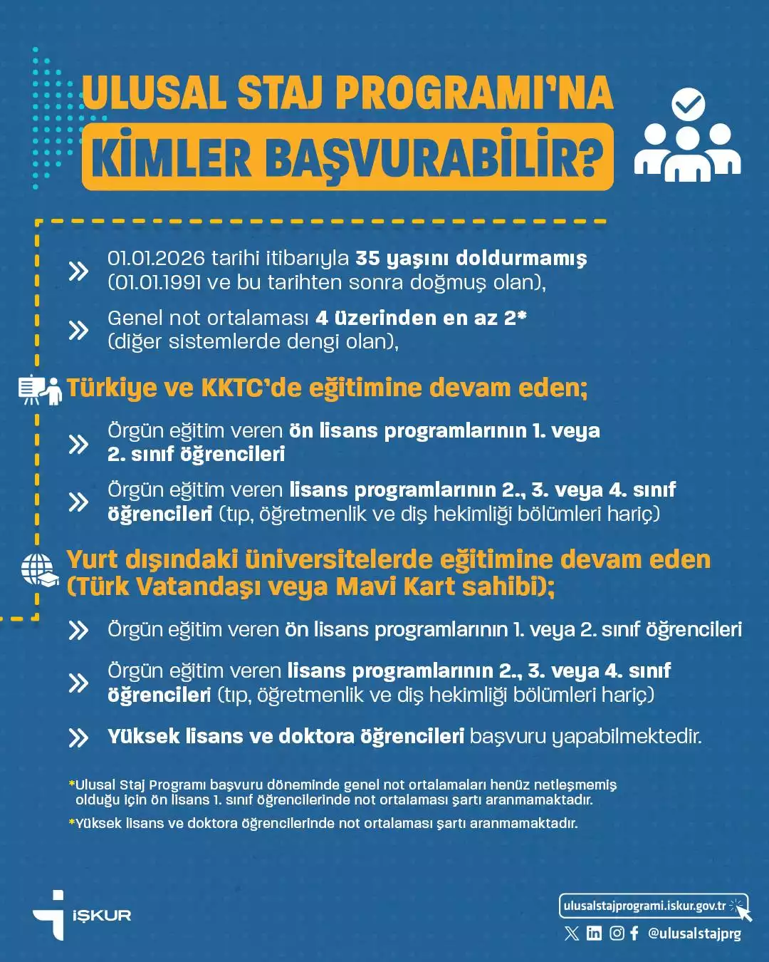Başvuru ve detaylı bilgi için: ulusalstajprogrami.iskur.gov.tr