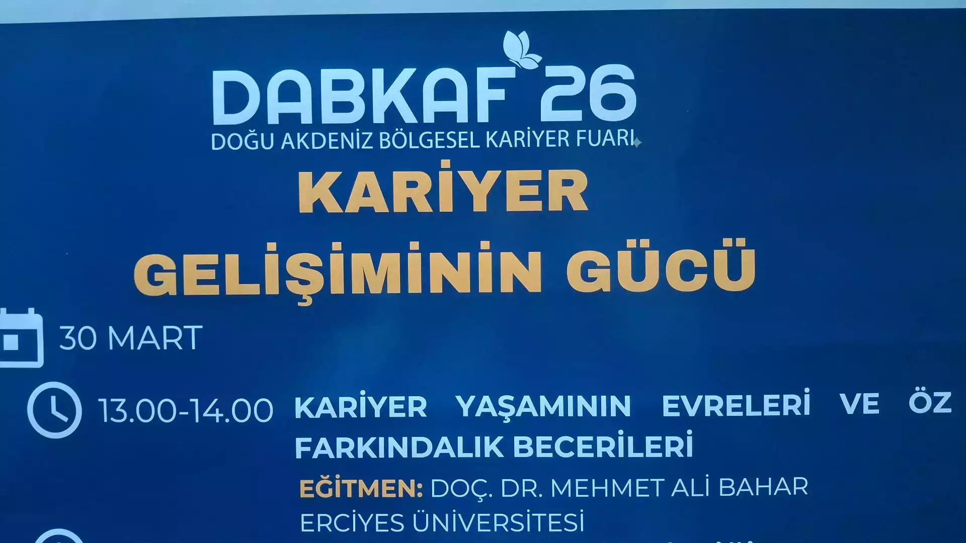 DABKAF’26 kapsamında Merkez Müdürümüz Doç. Dr. Mehmet Ali Bahar tarafından “Kariyer Yaşamının Evreleri ve Öz Farkındalık Becerileri” başlıklı atölye çalışması gerçekleştirildi.