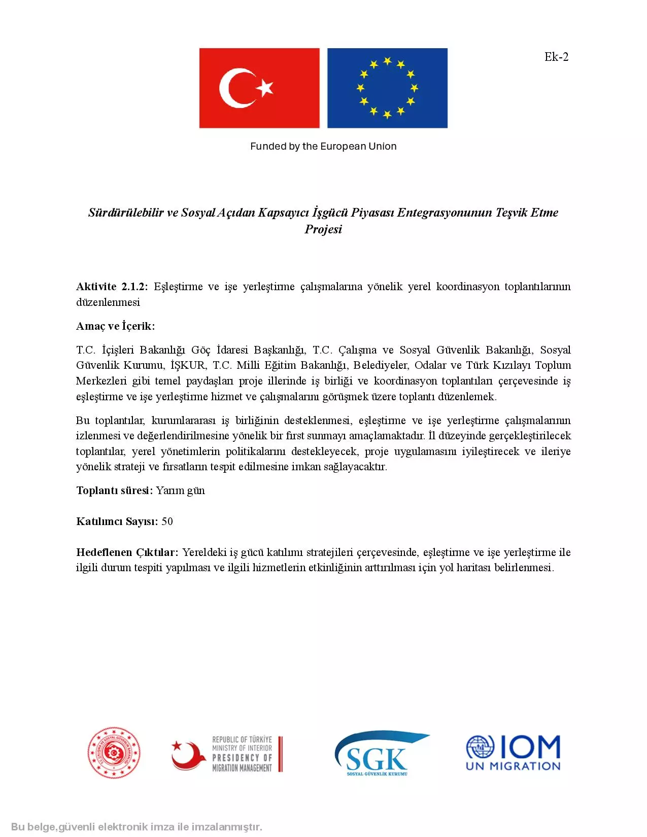 Sürdürülebilir ve Sosyal Açıdan Kapsayıcı İşgücü Piyasası Entegrasyonunu Teşvik Etme (Employability) Projesi faaliyetleri kapsamında, Birleşmiş Milletler Göç Örgütü (IOM) tarafından 11 Mart 2026 Çarşamba günü 09:30 ve 12:30 saatleri arasında düzenlenen Yerel İş Birliği Toplantısına Merkez Müdürümüz Doç. Dr. Mehmet Ali Bahar katıldı.