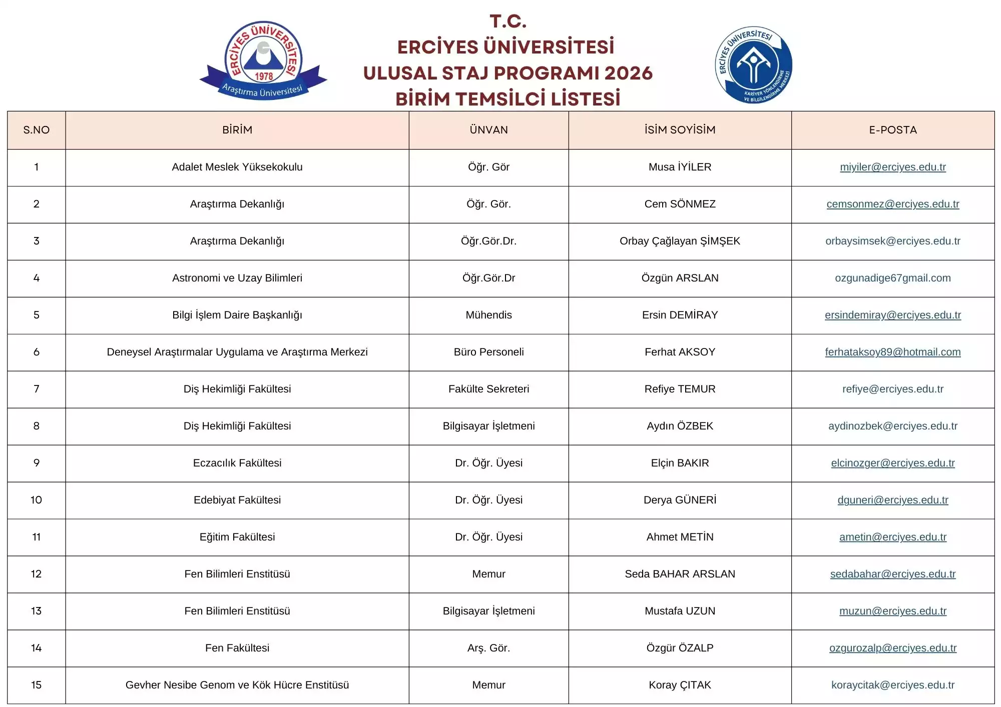 ULUSAL STAJ PROGRAMI BİRİM TEMSİLCİLERİMİZ